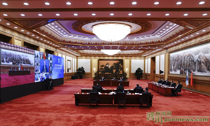 △11月10日晚,国家主席习近平在北京以视频方式出席上海合作组织成员国元首理事会第二十次会议并发表重要讲话。(新华社记者 李学仁 丁林 摄) 新华社北京11月10日电 国家主席习近平10日晚在北京以视频方式出席上海合作组织成员国元首理事会第二十次会议并发表题为《弘扬“上海精神” 深化团结协作 构建更加紧密的命运共同体》的重要讲话。习近平强调,上海合作组织要弘扬“上海精神”,加强抗疫合作、维护安全稳定、深化务实合作、促进民心相通,携手构建卫生健康共同体、安全共同体、发展共同体、人文共同体,为推动构建人类命运共同体作出更多实践探索。 本次会议由上海合作组织轮值主席国俄罗斯总统普京主持,印度总理莫迪、哈萨克斯坦总统托卡耶夫、吉尔吉斯斯坦代总统扎帕罗夫、巴基斯坦总理伊姆兰·汗、塔吉克斯坦总统拉赫蒙、乌兹别克斯坦总统米尔济约耶夫等成员国领导人,上海合作组织秘书长诺罗夫、上合组织地区反恐机构执委会主任吉约索夫等常设机构负责人以及阿富汗总统加尼、伊朗总统鲁哈尼、蒙古国总统巴特图勒嘎、白俄罗斯总理戈洛夫琴科等观察员国领导人和联合国秘书长古特雷斯与会。 习近平强调,上海合作组织成立以来,树立了相互尊重、公平正义、合作共赢的新型国际关系典范。新冠肺炎疫情发生后,各方同舟共济、守望相助,为本组织稳定发展和国际抗疫合作注入了正能量。 习近平指出,新冠肺炎疫情加速了国际格局调整,世界进入动荡变革期。国际社会正在经历多边和单边、开放和封闭、合作和对抗的重大考验。“世界怎么了,我们怎么办”成为时代之问,各国人民对美好生活的向往更加强烈,和平、发展、合作、共赢的时代潮流不可阻挡。历史已经并将继续证明,睦邻友好必将超越以邻为壑,互利合作必将取代零和博弈,多边主义必将战胜单边主义。 习近平强调,当前形势下,上海合作组织要弘扬“上海精神”,深化团结协作,为地区国家稳定和发展作出更大贡献,为推动构建人类命运共同体作出更多实践探索。 第一,加强抗疫合作,构建卫生健康共同体。要加强各国联防联控,维护地区和全球公共卫生安全。支持世界卫生组织发挥关键领导作用,反对将疫情政治化、病毒标签化,共同抵制“政治病毒”。中方倡议成员国疾控中心设立热线联系,愿积极考虑本组织国家疫苗需求。 第二,维护安全和稳定,构建安全共同体。要遵循共同、综合、合作、可持续的安全观,有效应对各类威胁和挑战。坚定支持有关国家依法平稳推进重大国内政治议程,坚定支持各国维护政治安全和社会稳定,坚决反对外部势力以任何借口干涉成员国内政。坚持通过对话和协商化解矛盾和分歧。严防“三股势力”借疫生乱,提升成员国执法安全合作水平。欢迎各方参与中方发起的“全球数据安全倡议”。 第三,深化务实合作,构建发展共同体。要继续推动共建“一带一路”倡议同各国发展战略及欧亚经济联盟等区域合作倡议深入对接,畅通区域经济循环,加快实现复工复产。扩大相互投资规模,加强数字经济、电子商务、人工智能、智慧城市等领域合作。中方将于明年在重庆举行中国-上海合作组织数字经济产业论坛。共同实施更多民生工程。中方支持设立本组织减贫联合工作组。 第四,促进民心相通,构建人文共同体。要促进文明互学互鉴,支持教育、文化、旅游、体育、媒体、妇女等领域交流合作。中方将于明年举办上海合作组织民间友好论坛,在未来3年为各方提供600名青年交流名额。 习近平强调,我们要以实际行动践行多边主义,秉持共商共建共享原则,完善全球治理、维护国际秩序。上海合作组织要拓展伙伴关系网络,在国际和地区事务中发挥更加积极作用。 习近平强调,中国正在加快形成新发展格局,建设更高水平开放型经济新体制。中国将坚定不移奉行互利共赢的开放战略。欢迎各方把握中国发展新机遇,积极深化对华合作。 习近平最后强调,明年本组织将迎来成立20周年华诞。让我们高举“上海精神”旗帜,精诚合作、砥砺前行,推动本组织得到更大发展,构建更加紧密的命运共同体! 与会外方领导人积极评价上合组织各领域合作进展,表示,当前国际形势中各种挑战和威胁增多,新冠肺炎疫情对全球政治、经济、社会产生严重负面影响。各国应合力应对,共同抗击疫情,反对借疫情对别国污名化。坚持多边主义,维护以联合国宪章和国际法为基础的国际秩序,维护以世界贸易组织为核心、以规则为基础的多边贸易体制,促进开放型世界经济。秉持互信、互利、平等、协商、尊重多样文明、谋求共同发展的“上海精神”,推动构建人类命运共同体。尊重各国人民自主选择的道路,反对外部势力干涉成员国内部事务。加强贸易、投资、产能、交通、能源、创新、数字经济等领域合作,改善民生,消除贫困。深化人文交流。支持“一带一路”倡议同欧亚经济联盟建设对接。协作打击“三股势力”,维护数据安全、生物安全,致力于通过对话协商和平解决争端,维护本地区安全稳定和可持续发展。 会议决定,由塔吉克斯坦接任上海合作组织轮值主席国。 会议通过并发表了《上海合作组织成员国元首理事会莫斯科宣言》以及关于共同应对新冠肺炎疫情,第二次世界大战胜利75周年,保障国际信息安全,数字经济领域合作,