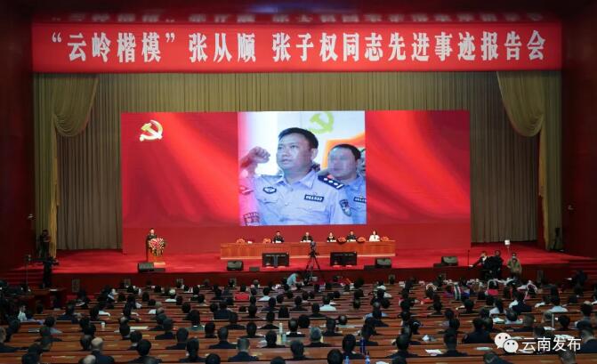 报告会上,播放了张从顺、张子权同志先进事迹专题片。临沧市公安局民警丁良庆、杨鑫、张子兵,张子权妻子李莲超,临沧市融媒体新闻中心记者毕昱等报告团成员,从不同侧面讲述了张从顺、张子权同志的感人事迹。