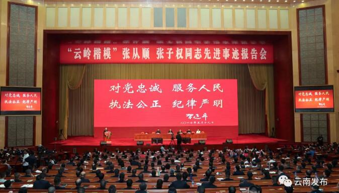5月26日,“云岭楷模”张从顺、张子权同志先进事迹报告会在昆明举行。 省委书记阮成发主持报告会并在会前会见了报告团成员,省长王予波、省委副书记李小三一同会见。省政协主席李江出席报告会。