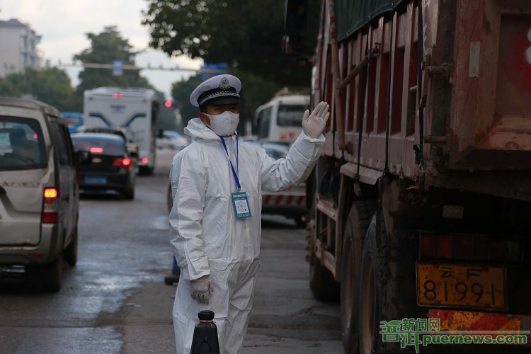 本网讯   “这里有可亲可敬的人民,有日新月异的发展,有赓续传承的事业。”挥别2021年,启航2022年,当人们沉浸在欢乐的节日氛围时,仍然有许 多人坚守岗位,奋战在疫情防控的最前沿,坚守在普洱486公里的边境线上,温暖守护着240万普洱各族人民群众。图为普洱交警在普洱南收费 站疫情防控临时检查点执勤。 (普洱日报记者 李超 摄)