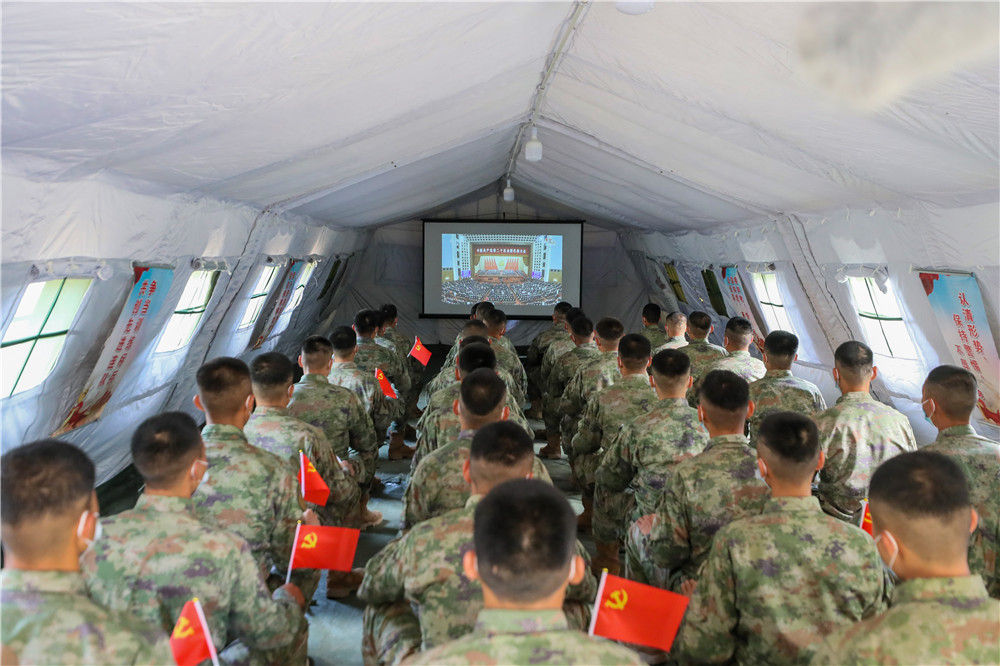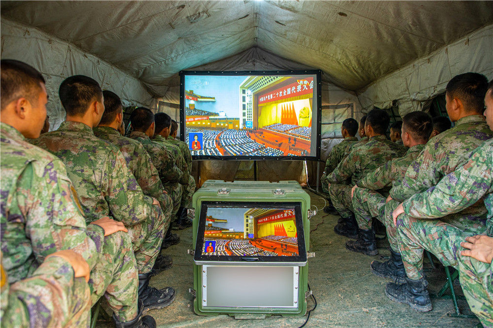 10月16日,新疆军区苏海图哨所官兵利用广播收听中国共产党第二十次全国代表大会开幕会。新华社发(何凯航 摄) 正在执行任务的中国第八批援助埃塞俄比亚军医专家组、中国第十二批赴南苏丹(瓦乌)维和工兵分队官兵,分别通过网络、电视收看党的二十大开幕实况。官兵们表示,一定要忠实履行使命任务,为促进世界和平与发展、推动构建人类命运共同体贡献更多力量,向世界展示中国军队良好形象。