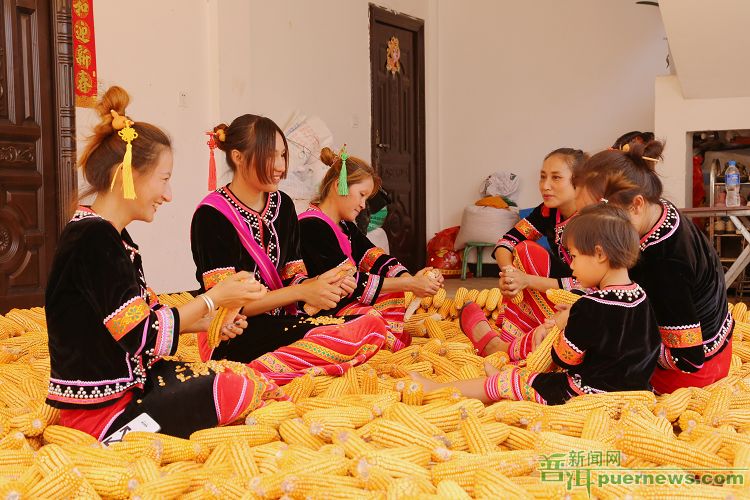 玉米丰收人欢笑。 (普洱日报记者 徐瑞 摄)