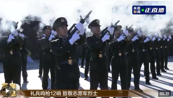 △礼兵鸣枪12响 致敬志愿军烈士