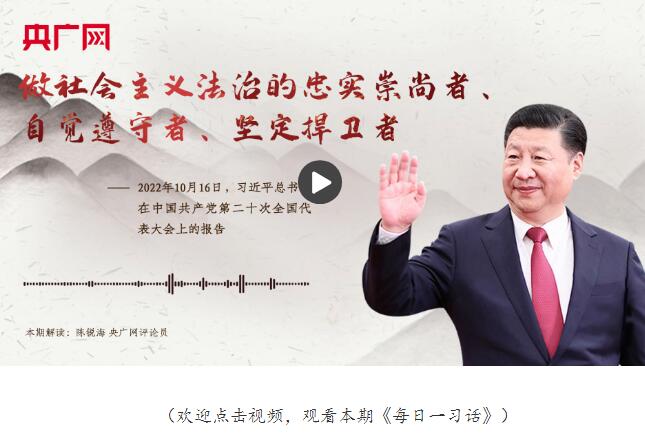 习近平:弘扬社会主义法治精神,传承中华优秀传统法律文化,引导全体人民做社会主义法治的忠实崇尚者、自觉遵守者、坚定捍卫者。 这段话出自2022年10月16日习近平总书记在中国共产党第二十次全国代表大会上的报告。 今年12月4日是第十个国家宪法日,12月1日至7日是宪法宣传周。连日来,各地各部门积极组织开展社会主义法治文化专题展览、宪法系列讲座视频、宪法普法进农村、全国青少年学生法治教育实践示范基地开馆等一系列活动,向公众大力普及宪法知识、弘扬宪法精神,在全社会形成尊法、学法、守法、用法的良好氛围。 法治是维护社会公平正义的根本,不仅需要完备的法律制度、完善的执法机制、也需要人人遵守法律规定,共同维护社会公平正义。人民维护自身权益要靠法律保障,法律权威更需要人民维护。只有全体人民信仰法治、各级行政执法部门厉行法治,国家和社会生活才能真正实现在法治轨道上运行。 近年来,我国各地各部门扎实推进全民普法和法治宣传教育工作,从建设法律故事文化墙,到推出“普法微课堂”;从演绎普法情景剧,到将反诈知识与传统民谣相结合,各地因地制宜推出各具特色的普法活动。数据显示,今年以来,全国已有137万多名青年志愿者参与普法,共开展93万多场活动。 同时,随着全国智慧普法平台逐步完善,一批动漫、短视频、网络直播等形式丰富、内容生动有趣的网络普法作品大量涌现,使普法更为群众喜闻乐见。有越来越多的社区、乡村为邻居乡亲打造“法律之家”;在一些偏远地区,当地法官将巡回法庭搬到村民、牧民的家门口,为大家提供诉讼服务;通过互联网,人们只用一部手机就可完成立案起诉等程序。对依法受理的案件,各级司法机关坚持有案必立、有诉必理……以更畅通便捷的维权通道、更严格公正的执法,努力让人们通过每一个司法案件感受到公平正义,“遇事讲法、遇事找法”逐步成为全社会共识。 对我们每个人来说,尊法、学法、守法、用法,既是权利,也是义务,关系到我们的切身利益和美好生活。我们要积极学习法律知识,自觉遵守法律法规,善于运用法律武器维护自身合法权益,坚决反对违法行为,努力让法治成为我们的思维方式和行为习惯,共同推进法治社会建设。 本期解读:陈锐海 央广网评论员 中国互联网发展基金会中国正能量网络传播专项基金资助支持