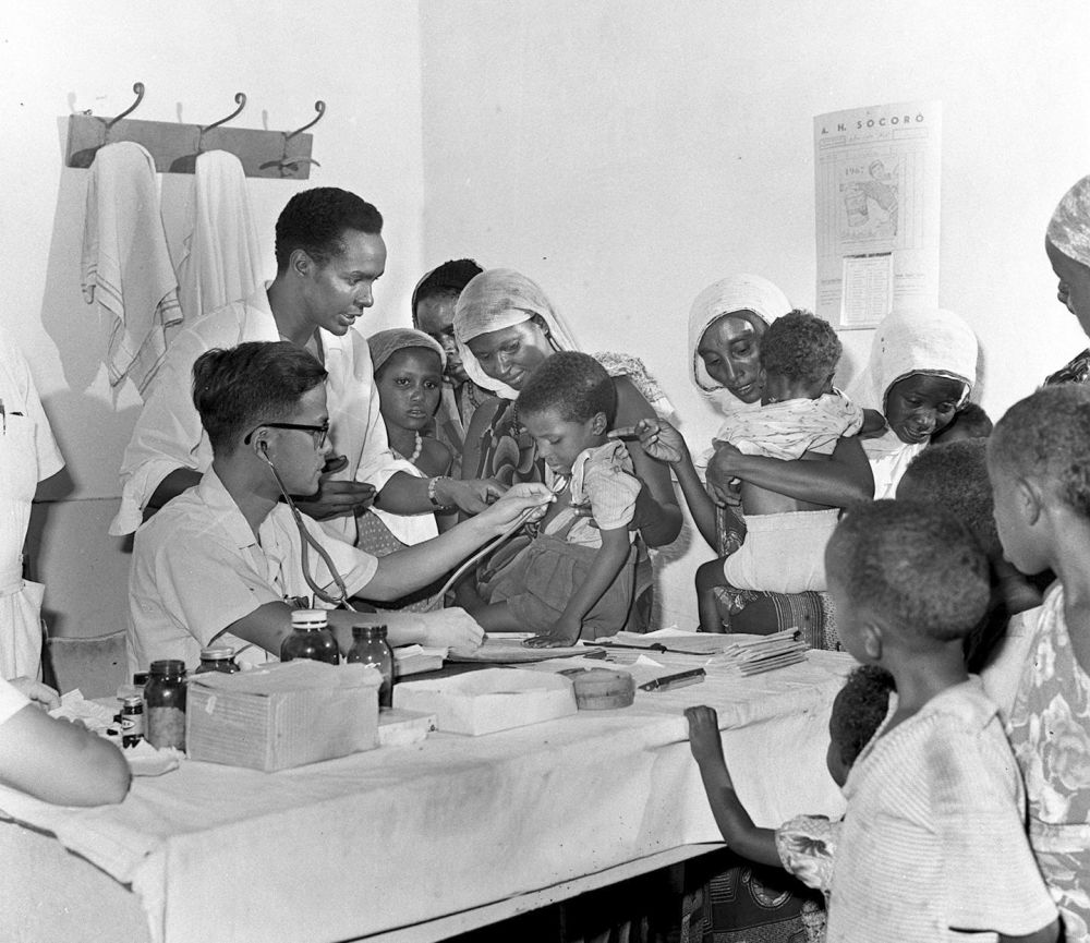 大道不孤,守望相助。 长期以来,中国坚持帮助非洲国家改善医疗卫生条件,开展援助非洲疾控中心等重大项目。面对埃博拉、新冠、疟疾等疫情,中国积极提供疫苗援助,派遣医疗队等公共卫生力量,对改善非洲国家医疗公共服务保障能力,发挥了重要作用。   从“十大合作计划”到“八大行动”再到“九项工程”,公共卫生健康合作在中非合作蓝图中一直占据重要位置,为构建人类卫生健康共同体打造了生动范例。 1965年,一名中国援阿尔及利亚医疗队医生(右一)在阿尔及利亚赛伊达省为牧民诊治。1963年4月,第一批援助阿尔及利亚的13名中国医疗队队员抵达阿西部城市赛伊达,拉开了中国援非医疗的序幕。 1968年4月,中国医疗队医生在索马里阿弗戈依镇巡回医疗时为当地儿童治病。 1995年,中国医生在多哥卡拉地区医院门诊部为患者进行针灸治疗。 2010年11月23日,在津巴布韦首都哈拉雷郊区的奇通圭扎中心医院,一位老人(右)在手术后重见光明,高兴地大叫起来。中国“非洲光明行”医疗队4名队员在5天内为307名白内障患者成功实施了复明手术。 2014年5月2日,在埃塞俄比亚首都亚的斯亚贝巴的阿勒特医院,一名小朋友等待参加“光明行”活动的中国眼科专家为他看诊。 2015年1月26日,解放军援塞医疗队医务人员在隔离病房为埃博拉疑似患者做检查(视频截图)。 2015年2月18日,在塞拉利昂弗里敦市郊的中塞友好医院埃博拉留观诊疗中心,中国人民解放军302医院援塞医疗队队员们进入埃博拉病房查房,发放药品。 2018年12月8日,在马拉维南部布兰太尔市卡迪迪村卫生院,第六批中国援马拉维医疗队医生在义诊活动中为当地居民检测疟疾。 2020年5月26日,在刚果(布)首都布拉柴维尔,中国抗疫医疗专家组与当地一线医务人员交流,指导新冠肺炎病房建设。 2022年10月26日,中国援坦桑尼亚医疗队小儿外科医生丁国建(中)在坦桑尼亚达累斯萨拉姆的穆欣比利国立医院实施小儿腹腔镜手术(手机照片)。半个多世纪以来,中国援外医疗队和各项目组始终奋战在非洲地区病、传染病以及重大公共危机防治第一线。 以非洲疾控中心总部为代表,一大批中国援建的公共卫生基础设施相继落成,为非洲国家改善医疗公共服务保障能力提供了保证。 这是2014年8月16日拍摄的塞拉利昂-中国友好医院门诊楼外景,该院曾收治过埃博拉确诊病例。 这是2018年6月12日在刚果(布)首都布拉柴维尔郊区拍摄的中国援建中刚友好医院(航拍照片)。 这是2019年5月28日在津巴布韦马绍纳兰省拍摄的马胡塞夸中津友好医院主楼。 这是2023年6月16日在赤道几内亚涅方市拍摄的援赤几中赤几友好医院。 这是2023年9月10日在埃塞俄比亚首都亚的斯亚贝巴拍摄的非洲疾控中心总部大楼(无人机照片)。中国援非盟非洲疾病预防控制中心总部(一期)项目于2023年1月竣工,这是非洲大陆第一个拥有现代化办公和实验条件、设施完善的全非疾控中心。  制作:毕晓洋 许睿 李琰 张曼怡 记者:董江辉 刘卫兵 孟晨光 李京 王冠森 张玉亮 王腾 王南生 李治元 李平 新华社摄影部制作 新华社第一工作室出品