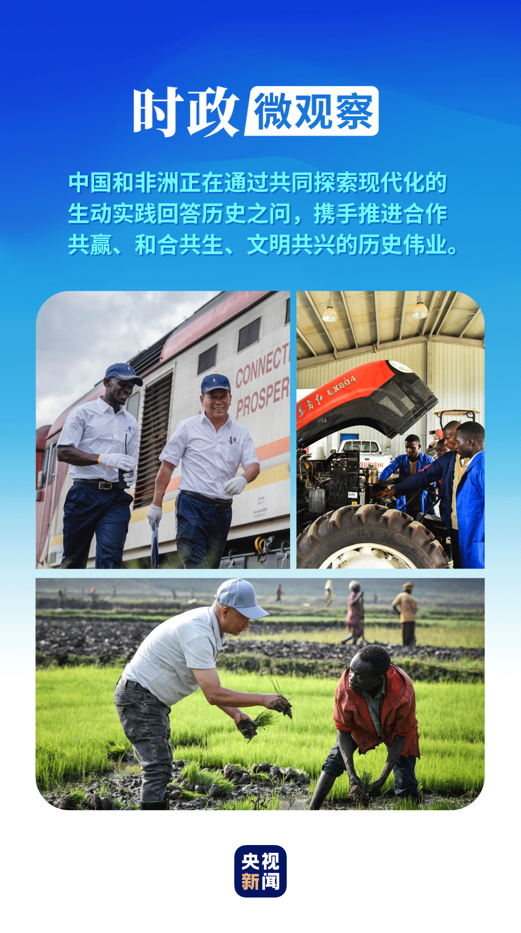 初秋的北京,迎来中非大家庭的盛事——2024年中非合作论坛峰会。中非领导人将再次聚首北京,围绕“携手推进现代化,共筑高水平中非命运共同体”这一主题,共叙友情,共商合作,共话未来。 “中国是世界上最大的发展中国家,非洲是发展中国家最集中的大陆,中非早已结成休戚与共的命运共同体。”6年前的9月3日,习近平主席在2018年中非合作论坛北京峰会开幕式上的一席话,道出中国和非洲虽远隔重洋却心心相印的情谊。 新时代以来,习近平主席高度重视中非关系,亲自擘画、亲力亲为,引领中非合作达到前所未有的新高度。在元首外交引领下,无数手牵手、心连心的友好合作故事,汇聚成一幅中非携手开创未来的生动画卷。 “患难之交不能忘” 在坦桑尼亚港口城市达累斯萨拉姆西郊,援坦中国专家公墓庄严肃静。“异国青山埋忠骨,往昔峥嵘今犹酣”,碑上的一字一句印刻着一段可歌可泣的中非交往史。 20世纪70年代,数万名中国专家和技术人员远涉重洋来到非洲,同坦桑尼亚和赞比亚人民并肩奋斗,用汗水和鲜血乃至生命筑成了被誉为友谊之路、自由之路的坦赞铁路。 2013年3月,当选国家主席后首次出访非洲,习近平主席来到坦桑尼亚。他冒着细雨来到援坦中国专家公墓,缅怀长眠于此的烈士。习主席称颂他们是“铸就中坦、中非友谊丰碑的英雄”。 “中非一家亲。我这个年纪的中国人,从小就是在中非友好的热烈气氛中长大的,对非洲有很浓厚的兴趣,熟知一些非洲国家老一代领导人的名字,熟知坦赞铁路等中非友好佳话。”在出访前夕接受金砖国家媒体联合采访时,习近平主席深情讲述中非关系。