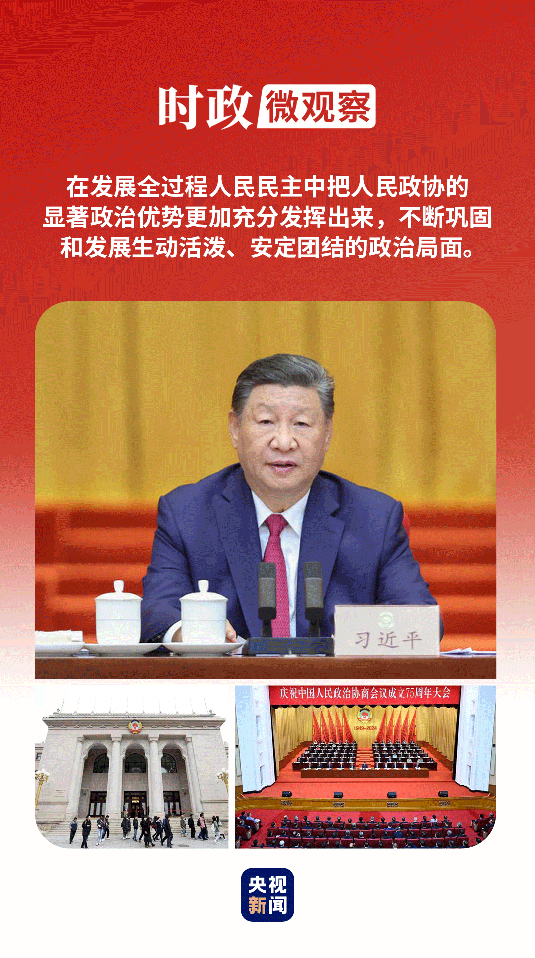 △9月20日,中共中央、全国政协在全国政协礼堂隆重举行庆祝中国人民政治协商会议成立75周年大会。 今年的庆祝大会上,习近平总书记指出,人民政协作为最广泛的爱国统一战线组织,坚持大团结大联合,坚持正确处理一致性和多样性的关系,有利于最大限度把全体中华儿女智慧和力量汇聚起来,形成心往一处想、劲往一处使的生动局面。 在发展全过程人民民主中发挥人民政协显著政治优势 协商民主是全过程人民民主的重要组成部分,是我国社会主义民主政治的特有形式和独特优势,是党的群众路线在政治领域的重要体现。 进入新时代,全国政协聚焦党和国家中心任务履职尽责,把围绕推进中国式现代化献计出力作为履职主线,紧扣“国之大者”和民之关切,建睿智之言,聚磅礴之力,助推党中央决策部署的贯彻落实。 去年10月,习近平总书记出席中央金融工作会议并发表重要讲话,对推动金融高质量发展作出全面部署。 不久后,全国政协就“推动金融高质量发展”主题赴广东惠州、东莞、深圳等地调研,连开三场座谈会了解金融发展情况。2024年全国政协首场双周协商座谈会,再次聚焦这一主题,为推动金融高质量发展贡献力量。