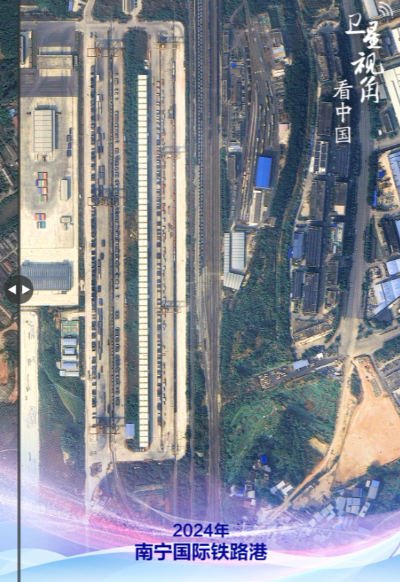 左右滑动看变化 南宁国际铁路港是西部陆海新通道上的重要枢纽。每天都有满载西部省份运来的货物班列在此集合,通过多式联运接续中越班列驶往越南。“钢铁丝带”为中国—东盟的人流、物流、信息流互联互通按下“加速键”。 近年来,广西基于沿海、沿边、沿江独特的区位优势,全力构建综合交通立体网络,强化港航和枢纽服务功能,加快建设以北部湾港为出海口、铁路和高速公路多通道共担,连接黔渝川等内地和东盟的西部陆海新通道。2023年西部陆海新通道沿线省区市经广西口岸进出口贸易总额达6044.8亿元,比2017年增长了104.4%,通道辐射带动作用进一步得到增强。