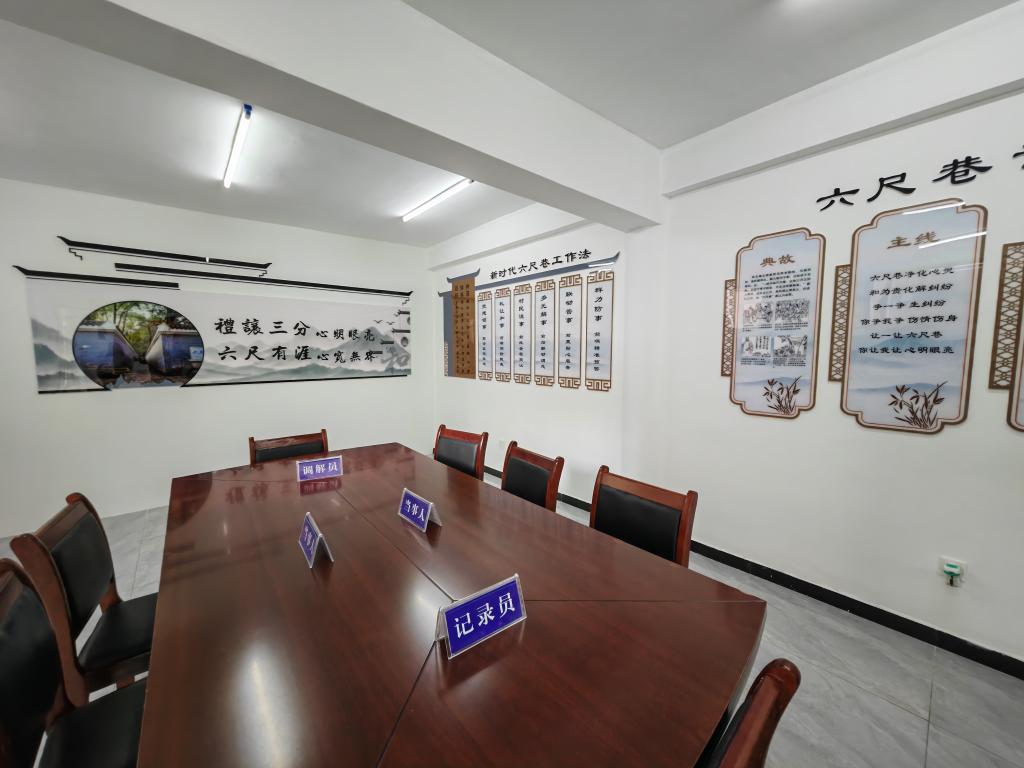位于桐城市某社区的“六尺巷调解工作室”。新华社记者 陈诺 摄 今天,行走在桐城市的大街小巷,随处可见“六尺巷”的影子:街头墙壁上,有“六尺巷”的漫画;社区楼宇,是“让他三尺又何妨”的诗句;翻开孩子们的书本,可见“六尺巷”的故事。 自带流量的“六尺巷”,走出安徽,走向更广阔天地。2023年全国两会期间,“六尺巷调解法”现身最高法报告。2023年11月,“新时代六尺巷工作法”获评全国新时代“枫桥经验”先进典型。“六尺巷”的精神,在湖北、广西、山东等地基层政法部门,被应用于解纷实践。