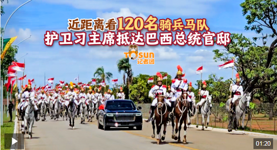 时政Vlog丨马蹄声声!近距离看120名骑兵马队护卫习主席抵达巴西总统官邸
