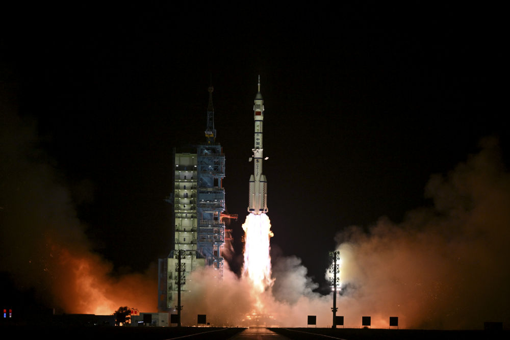 2024年10月30日,搭载神舟十九号载人飞船的长征二号F遥十九运载火箭在酒泉卫星发射中心点火发射。新华社记者李鑫摄