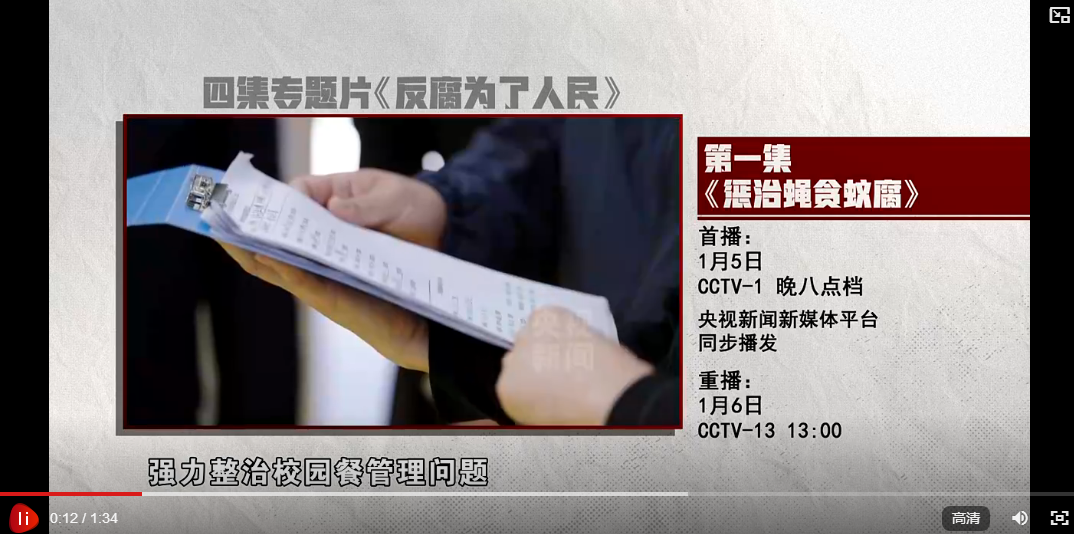 【解说词】《反腐 为了人民》第一集《惩治蝇贪蚁腐》,敬请关注。