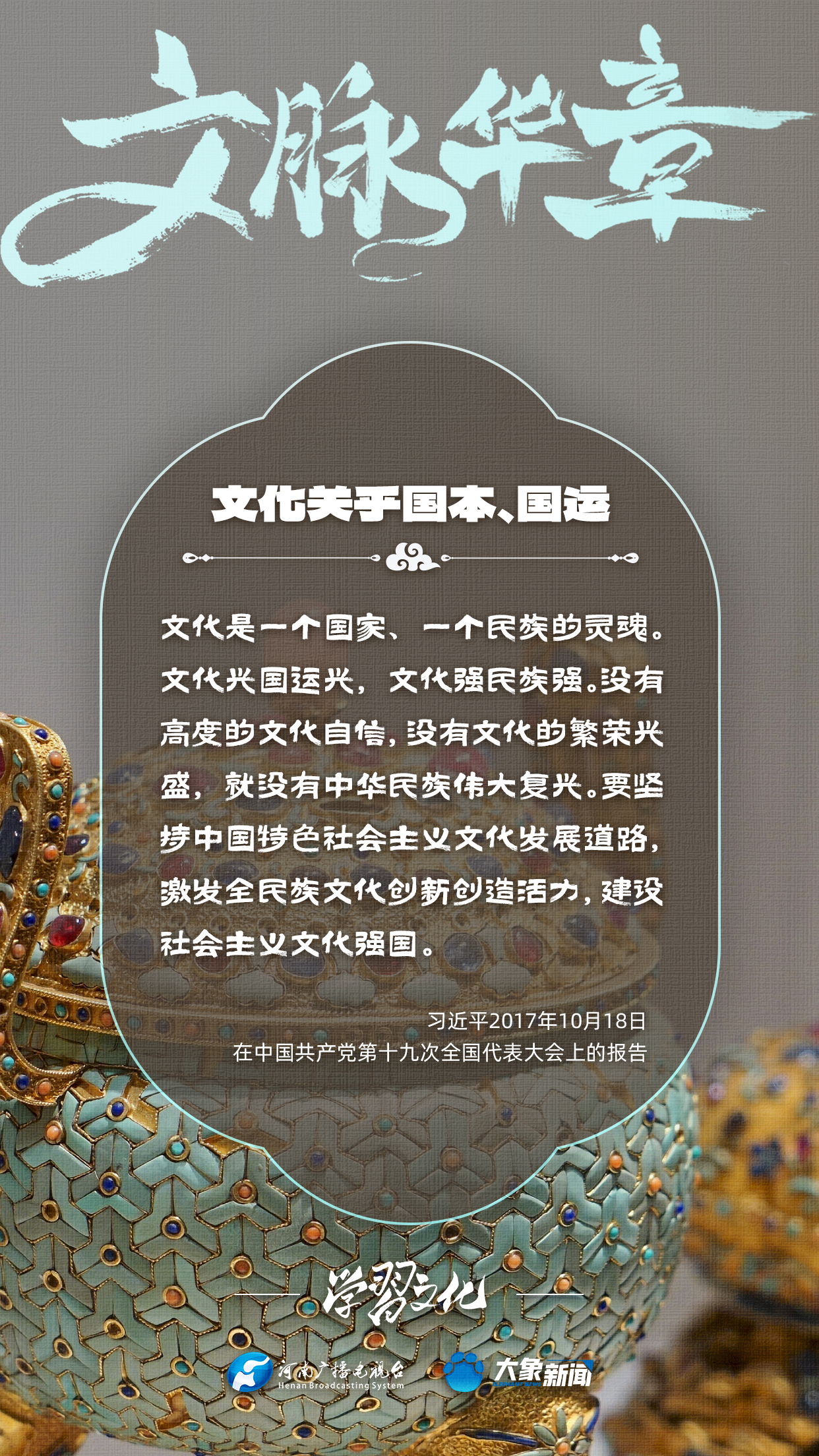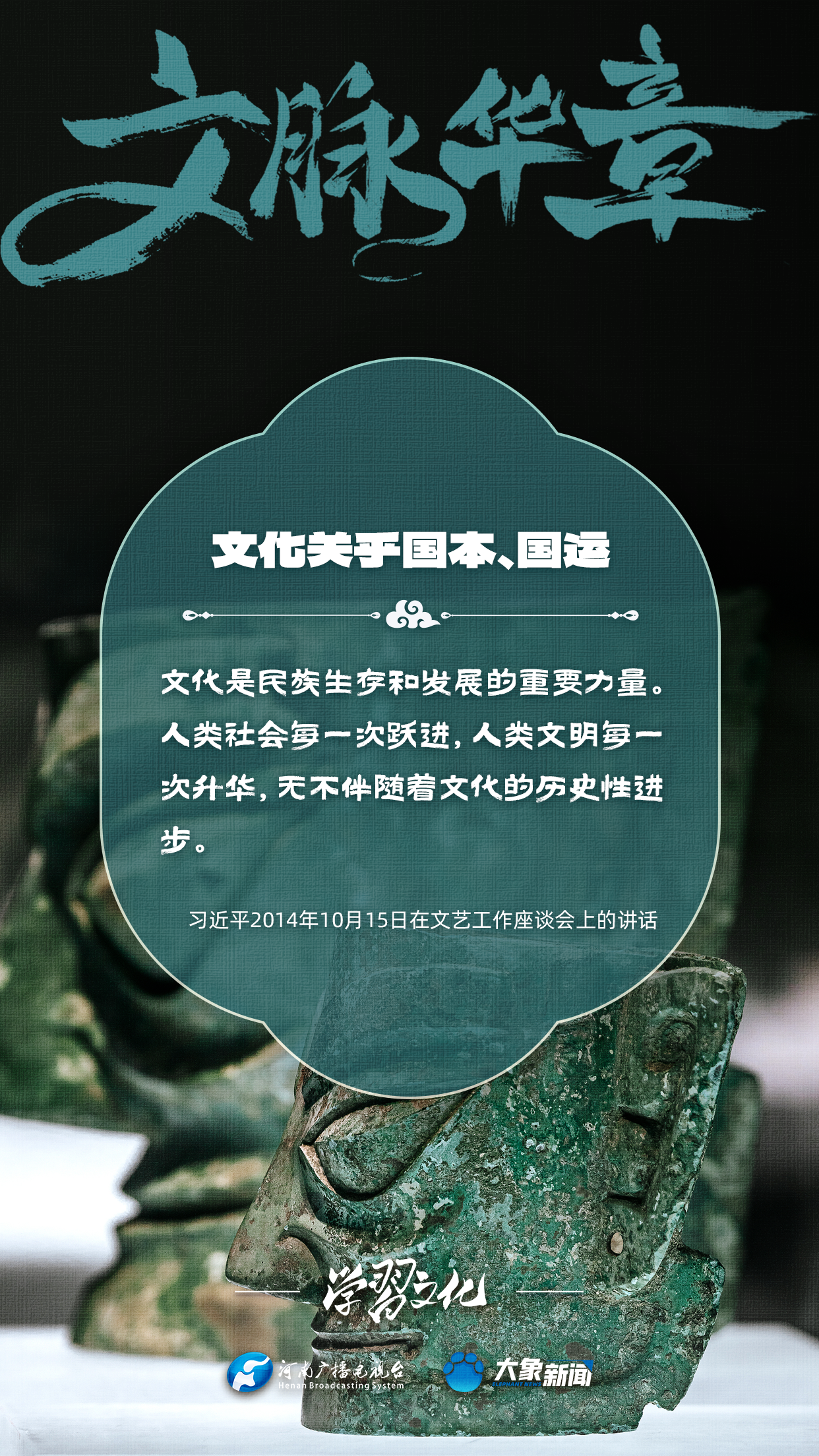 习近平总书记高度重视文化之于国家、之于民族的重大意义,强调:文化是一个国家、一个民族的灵魂。文化兴国运兴,文化强民族强。没有高度的文化自信,没有文化的繁荣兴盛,就没有中华民族伟大复兴。大象新闻梳理了习近平总书记的系列重要论述,我们一起学习。
