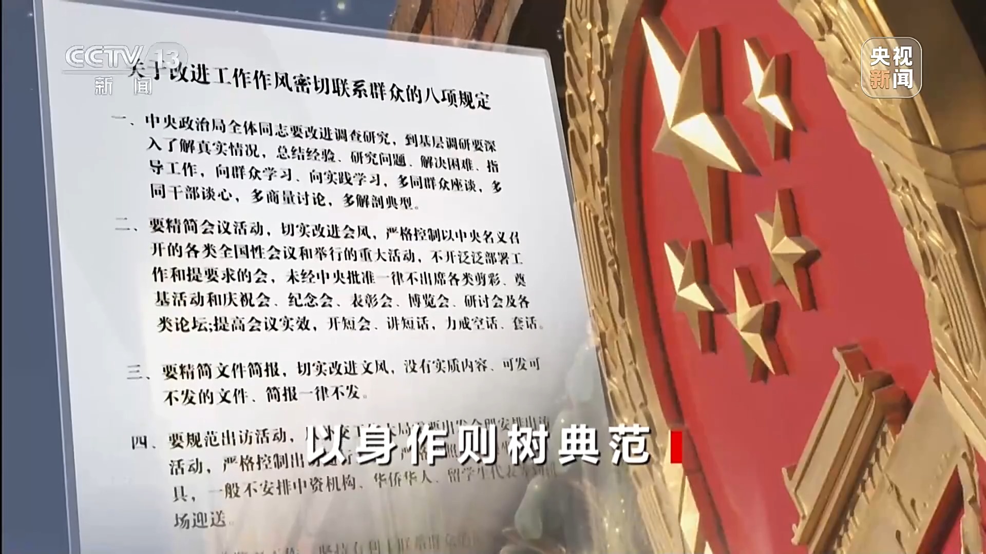 2024年年底,中共中央政治局召开民主生活会,听取关于2024年中央政治局贯彻执行中央八项规定情况的报告和关于2024年整治形式主义为基层减负工作情况的报告。中央八项规定出台12年来,已经成为党的作风建设的代名词和全面从严治党的重要内容,习近平总书记始终带头严格执行中央八项规定,以身作则,率先垂范,为全党树立了标杆。
