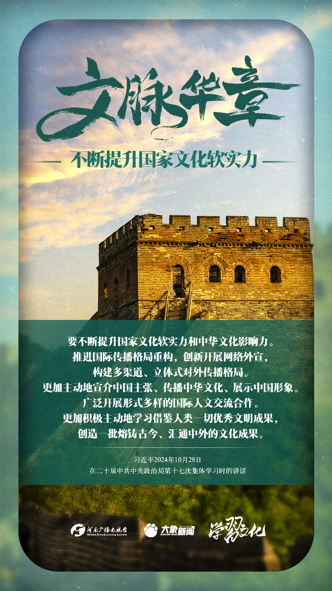 文化软实力集中体现了一个国家基于文化而具有的凝聚力和生命力,以及由此产生的吸引力和影响力。党的十八大以来,习近平总书记站在党和国家事业发展全局的战略高度,就提高国家文化软实力阐发了一系列重要论述。我们一起学习。