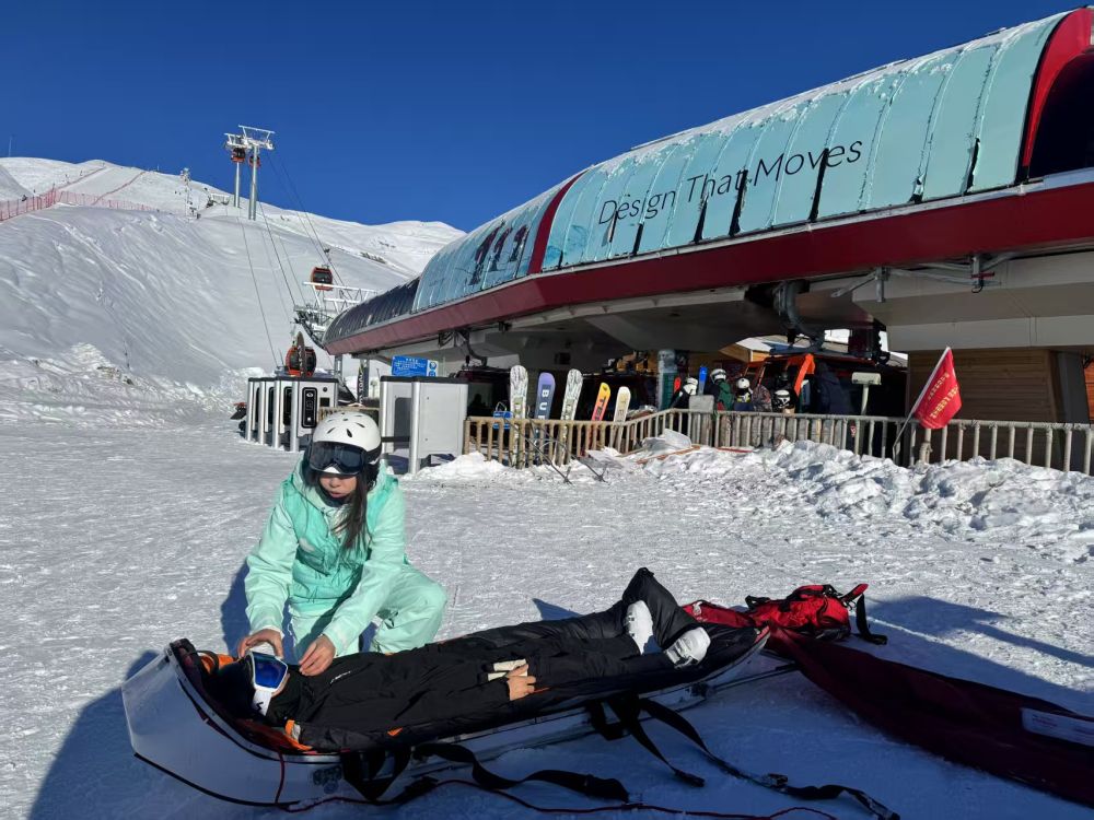 雪友是否受伤,雪道是否有障碍物,防护网是否完好,设施设备是否正常运行……作为该滑雪度假区巡逻救援队中唯一的女性滑雪巡救员,21岁的帕提曼全神贯注。