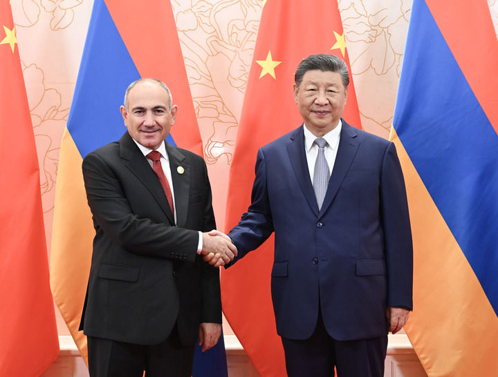 习近平强调,双方要高质量共建“一带一路”,加强互联互通,推进教育、科技、文化、旅游等交流,为两国人民创造更多福祉。中方支持亚美尼亚加入上海合作组织,愿同亚方一道,践行真正的多边主义,携手推动构建人类命运共同体。
