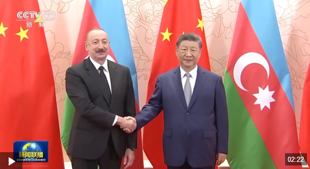 习近平指出,中国同阿塞拜疆是好朋友、好伙伴。建交33年来,两国传统友谊日益深化,政治互信持续巩固,互利合作成果丰硕。今年4月,我们宣布中阿建立全面战略伙伴关系,开启两国全方位合作新篇章。中阿两国是发展振兴的同路人,中方愿同阿方一道,保持双边合作蓬勃发展势头,共创两国共赢发展新未来。