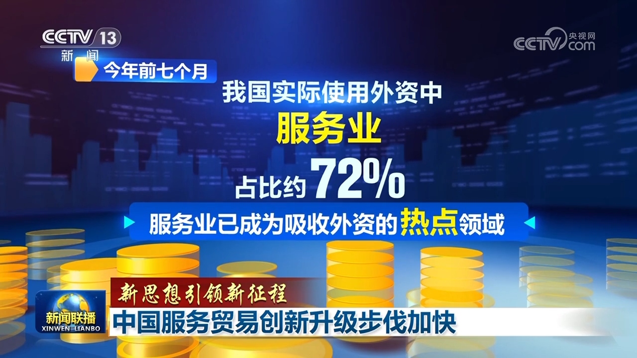 服务出口国际竞争力提升的同时,优质服务进口也不断扩大。今年,我国聚焦电信服务、医疗康养、金融等关键领域,部署了155项服务业扩大开放试点任务,持续放宽市场准入门槛。在国家服务业扩大开放综合示范区北京,约200家中外资金融机构已相继落地。今年前7个月,我国实际使用外资中服务业占比约72%,服务业已成为吸收外资的热点领域。