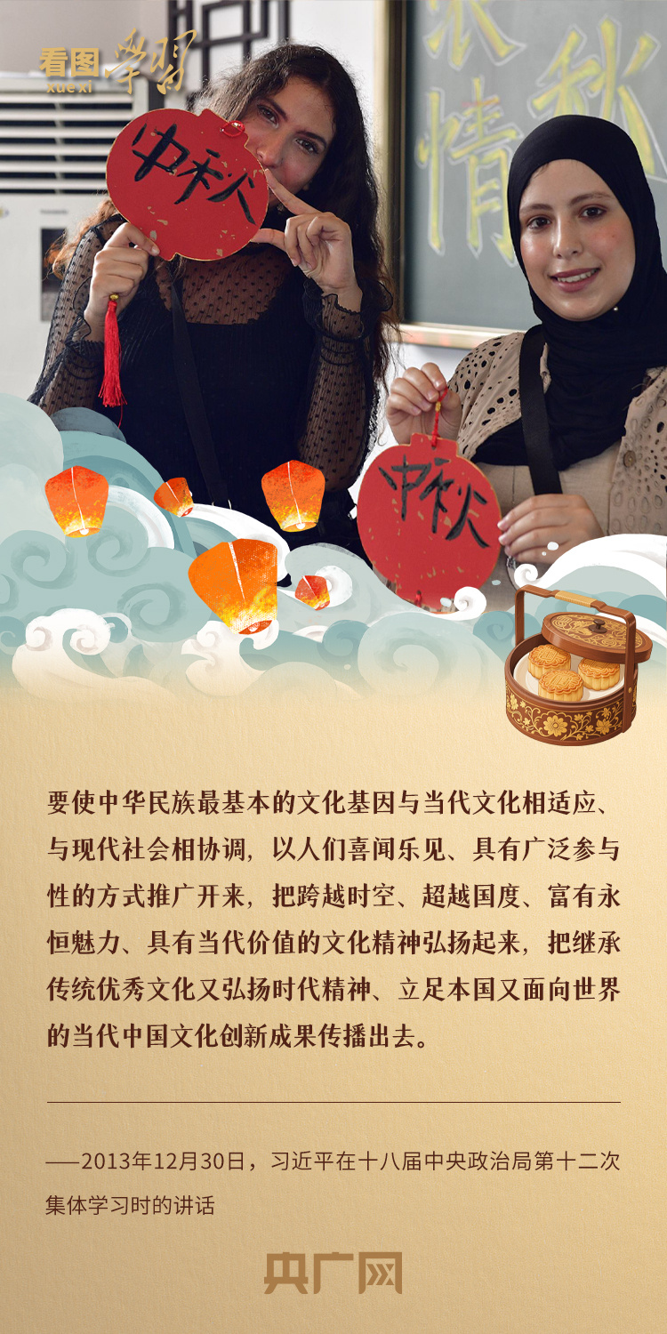 中秋节是我国四大传统节日之一,承载着中华民族优秀传统文化底蕴,寄托着中国人浓浓的家国情怀和圆满和谐的美好追求。习近平总书记曾指出,要“把历经沧桑留下的中华文明瑰宝呵护好、弘扬好、发展好”。中秋佳节,让我们一起重温总书记关于中华优秀传统文化的深刻阐释、深情嘱托,坚定文化自信,更好构筑中国精神、中国价值、中国力量。