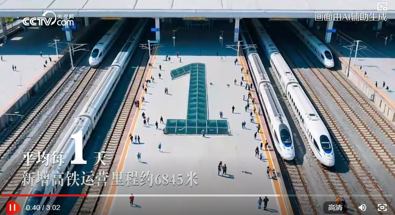 平均每天,约有3.59万辆新能源汽车下线、新增高铁运营里程约6845米。
