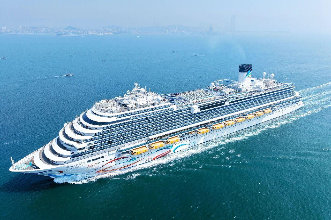△2025年4月10日,首艘国产大型邮轮“爱达·魔都”号圆满完成青岛首航。