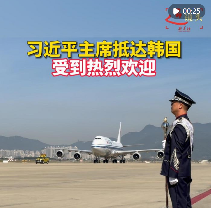 当地时间10月30日,国家主席习近平乘专机抵达韩国,将出席亚太经合组织第三十二次领导人非正式会议并对韩国进行国事访问。
