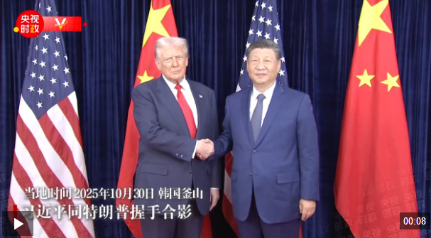 当地时间10月30日中午,中美元首会晤开始前,习近平同特朗普握手合影。