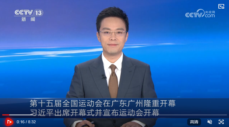 11月9日晚,中共中央总书记、国家主席、中央军委主席习近平在广东省广州市出席中华人民共和国第十五届运动会开幕式并宣布运动会开幕。