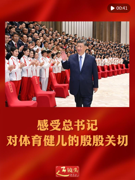 习近平总书记高度重视和关心体育事业,党的十八大以来多次寄语中国体育健儿。每次见到大家,总书记都会点赞运动员们的优异成绩和拼搏精神,勉励大家奋力拼搏、再创佳绩,为建设体育强国作出新贡献。