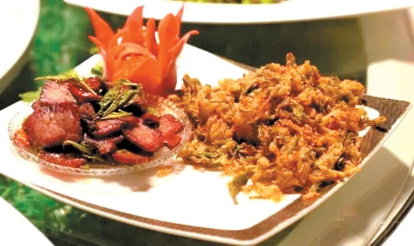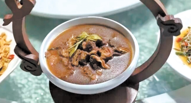 茶,不仅浮沉于杯盏之间。在普洱,它化为一席流动的山水——古树茶的嫩尖轻裹薄浆,炸作茶香虾,入口是酥脆中透出的一缕清幽;茶枝与土鸡慢炖成汤,澄澈如泉,茶树鸡汤入口甘润,恍若饮尽山间朝雾;茶青揉进香米,蒸出满锅翠色,茶香排骨煨出岩骨花香。一席终了,唇齿之间,仍是原始森林的晨风,轻轻回荡。