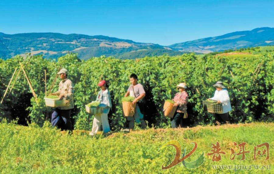 订单农业织就产销“双保险”。岩甩砍是新厂村三组的农户。过去,他家的田地到了冬季就闲置,种青菜也卖不到好价钱。2018年,镇里推广“企业+农户”模式,开始探索无筋豆种植。那时他还在犹豫,但看到越来越多村民靠种植无筋豆挣到钱,他也心动了,2021年,他签了订单。“公司提供种子、化肥、地膜,教技术又包销路,我们只管把豆子种好!”经过几年的种植,岩甩砍已成为村里的种植能手,去年他家种的1.9亩无筋豆因管理得当,收入达12000元,村民们都对他竖起大拇指。