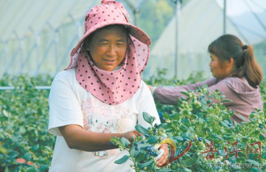 “以前,种一亩田地只有一千元左右的收入,现在土地流转有租金,我在基地管水、肥和摘蓝莓,一个月能挣3000多元,还能照顾家里的老人和孩子,比外出打工强多了。”墨江县鱼塘镇和平村村民钟江琼说。