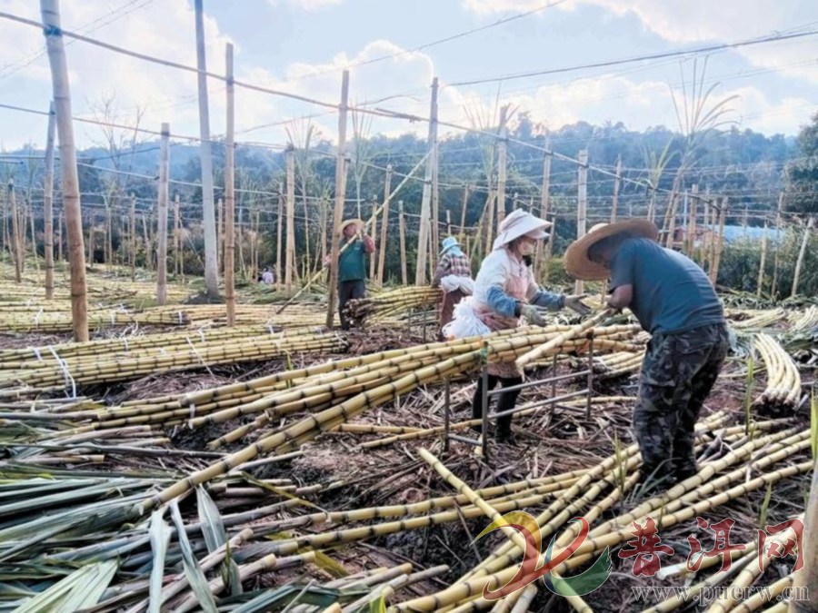 普洱日报讯(记者 刘绍容 摄影报道)冬日暖阳下,思茅区南屏镇南岛河村的甘蔗园一片金黄。粗壮的水果甘蔗成行成排,闪着油亮的光,丰收的喜悦写在每位蔗农的脸上。“今年雨水来得及时,甘蔗长得格外壮,平均亩产近10吨了。”村民卢加发一边砍蔗一边算起账:他家种了5亩水果甘蔗,两个月前就被四川客商整园订走,亩产值可达1.6万元。