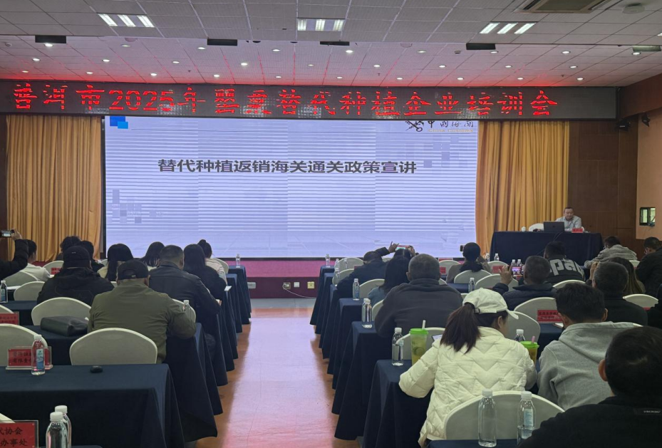 为进一步提升替代种植企业经营管理水平与绩效考核工作实践能力,有效推动境外罂粟替代种植工作健康持续发展,普洱市商务局于12月16日至17日在金凤酒店举办2025年末境外罂粟替代种植企业培训会。全市涉及替代种植的县(区)商务主管部门负责人及境外罂粟替代企业代表共约70人参加本次培训。