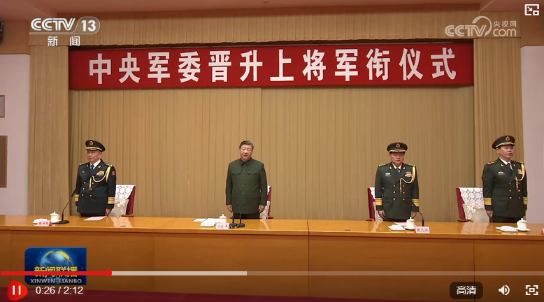 中央军委举行晋升上将军衔仪式 习近平颁发命令状并向晋衔的军官表示祝贺