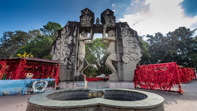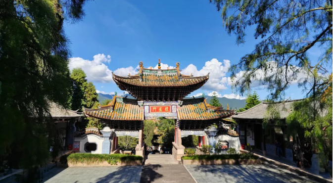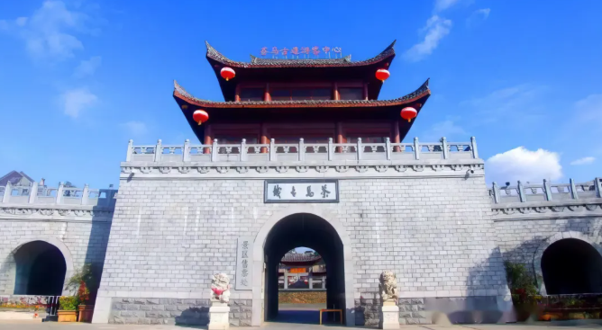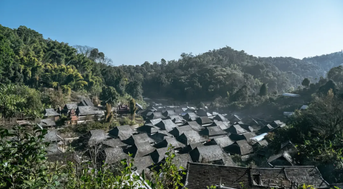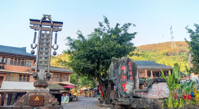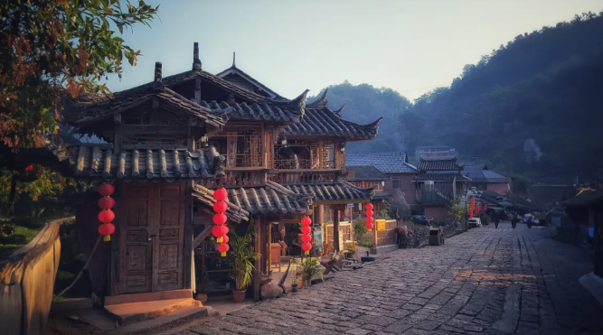 整座古寨宛如一块镶嵌鲜花与绿意的翡翠