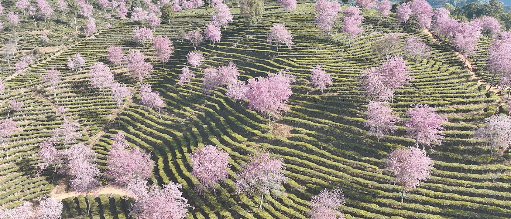 倚象山间,茶田的绿与樱花的粉层层交织;普洱茶博览苑里,千年茶香正与一期一会的花事轻声交谈。