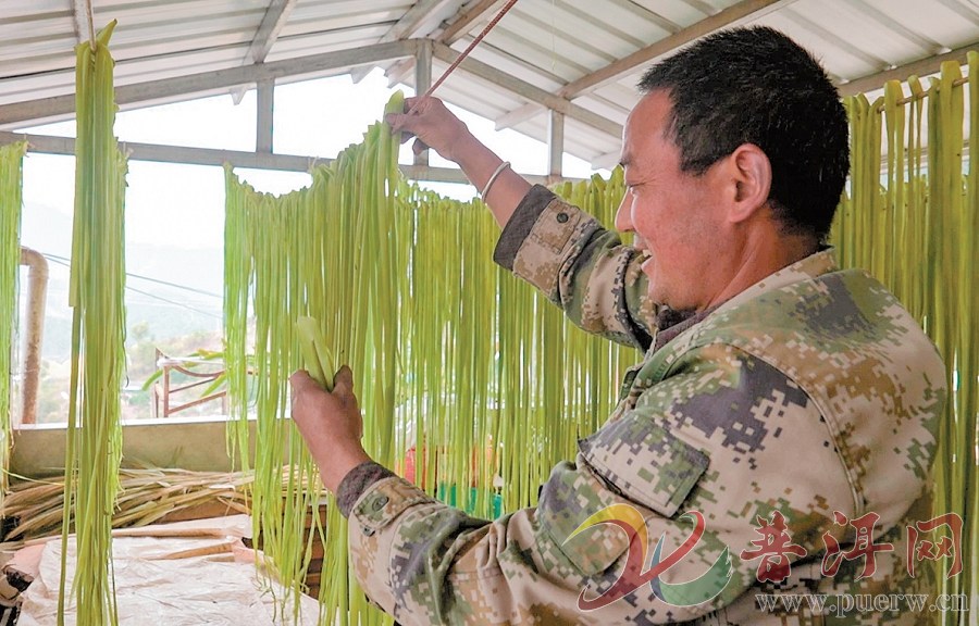 宣河村村民魏大钊家今年也种植了4亩贡菜。连日来,他们一家人配合默契,采收、削皮、开条、晾晒,忙得热火朝天。“目前,我家已卖了382公斤贡菜,保守估计,今年应该有3万多元收入。”看着晾晒场上一根根翠绿的贡菜条如翡翠丝带般随风舞动,魏大钊信心满满。