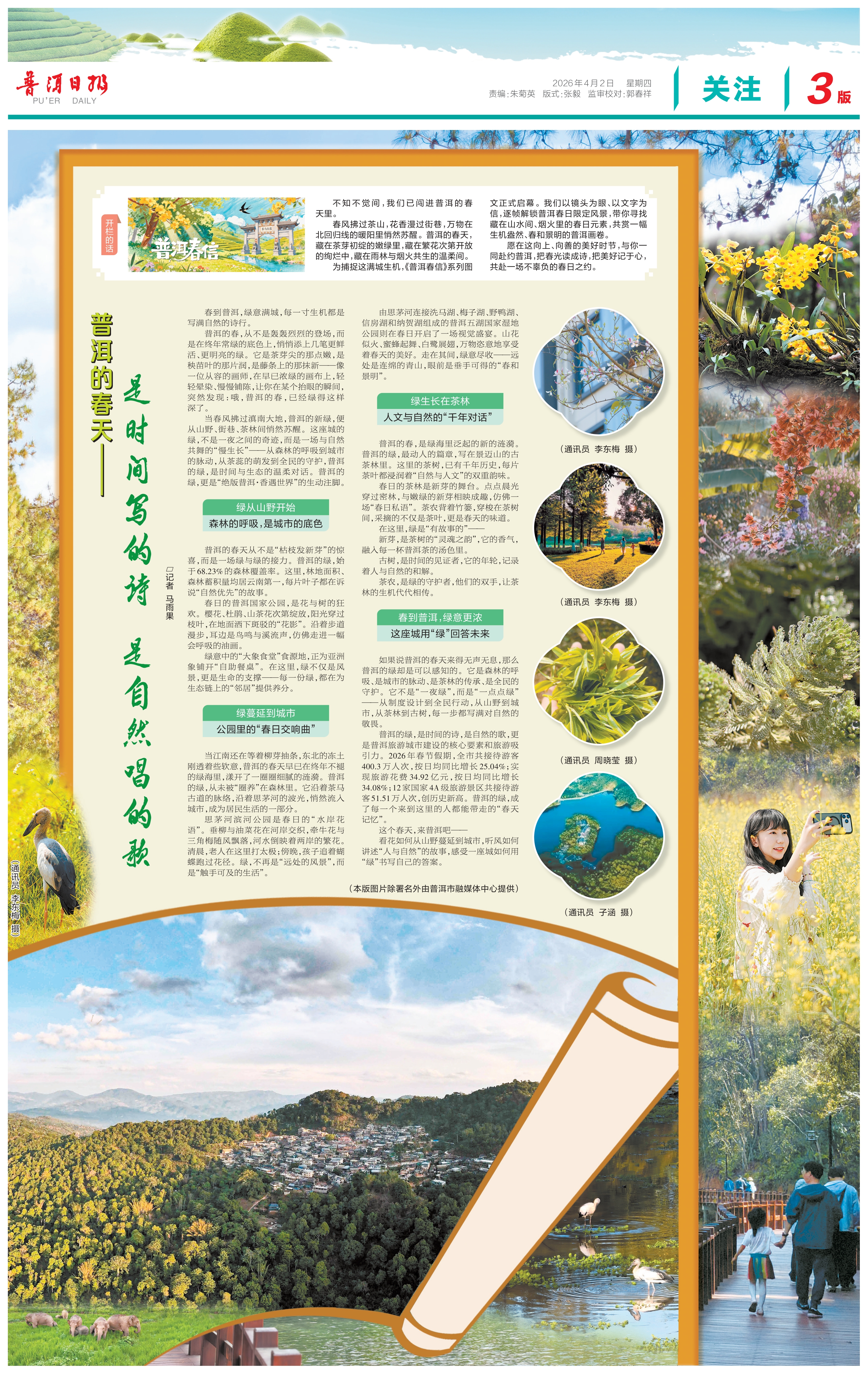 普洱日报讯(记者 马雨果)春到普洱,绿意满城,每一寸生机都是写满自然的诗行。