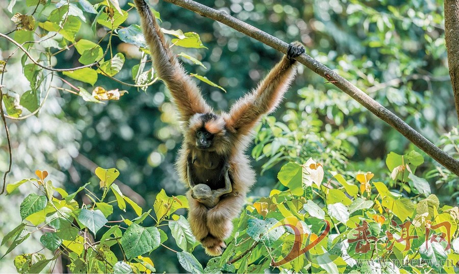 普洱日报讯(记者 何有刚 赵伟 通讯员 赵贤坤 田应兰 文/图) 近日,工作人员在云南无量山国家级自然保护区景东大寨子区域巡护监测时,发现一只雌性西黑冠长臂猿怀里多了一只刚出生的猿宝宝。