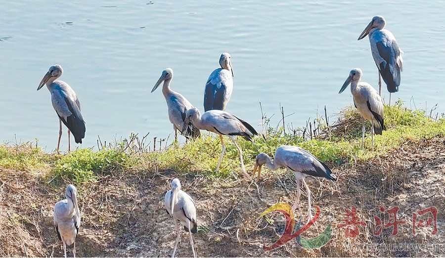 普洱网讯(通讯员 罗有华 罗昆红 摄影报道)近日,在景谷傣族彝族自治县威远镇的田野间,一群国家二级保护动物钳嘴鹳结队现身,它们或栖居于树梢,或悠闲漫步觅食,或展翅低空盘旋,黑白相间的羽翅与生机盎然的田园相映成趣,构成一幅灵动和谐的生态美景。