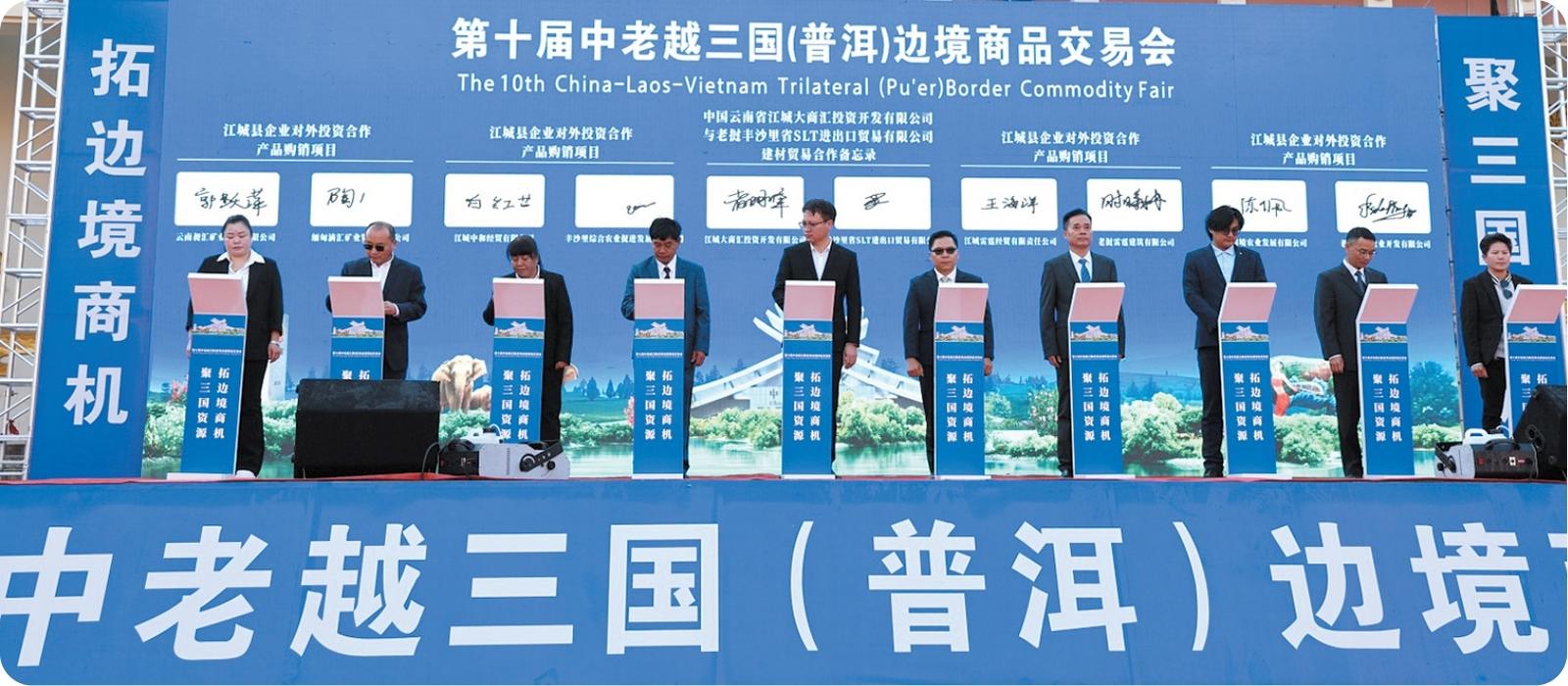江城县作为全国唯一与老挝、越南两国陆路接壤的边境县,拥有勐康口岸这一国际性开放口岸,龙富口岸建设也已启动,随着江城边境贸易的活力迸发,2024年,勐康口岸出入境人员达20.3万人次、进出口货值8亿元,均实现大幅增长;2025年1月至10月,进出口货值同比增长23.6%,为边交会奠定了坚实的合作基础。自2009年以来,边交会已成功举办九届,成为中老越三国边境地区经贸交往的重要桥梁、人文交流的璀璨舞台,在促进区域经济协同发展、深化三国人民友谊方面发挥着不可替代的重要作用。