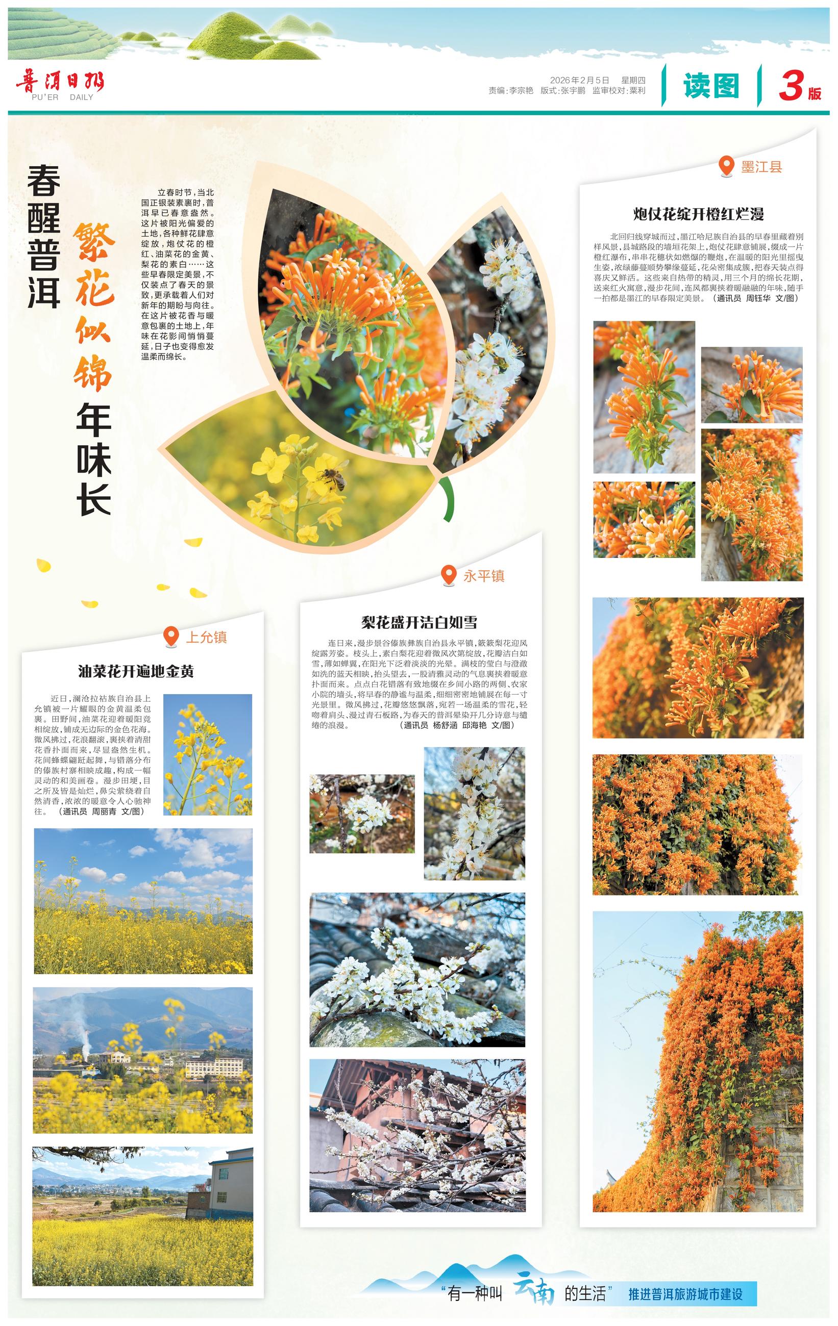 连日来,漫步景谷傣族彝族自治县永平镇,簌簌梨花迎风绽露芳姿。枝头上,素白梨花迎着微风次第绽放,花瓣洁白如雪,薄如蝉翼,在阳光下泛着淡淡的光晕。满枝的莹白与澄澈如洗的蓝天相映,抬头望去,一股清雅灵动的气息裹挟着暖意扑面而来。点点白花错落有致地缀在乡间小路的两侧、农家小院的墙头,将早春的静谧与温柔,细细密密地铺展在每一寸光景里。微风拂过,花瓣悠悠飘落,宛若一场温柔的雪花,轻吻着肩头、漫过青石板路,为春天的普洱晕染开几分诗意与缱绻的浪漫。 (通讯员 杨舒涵 邱海艳 文/图)