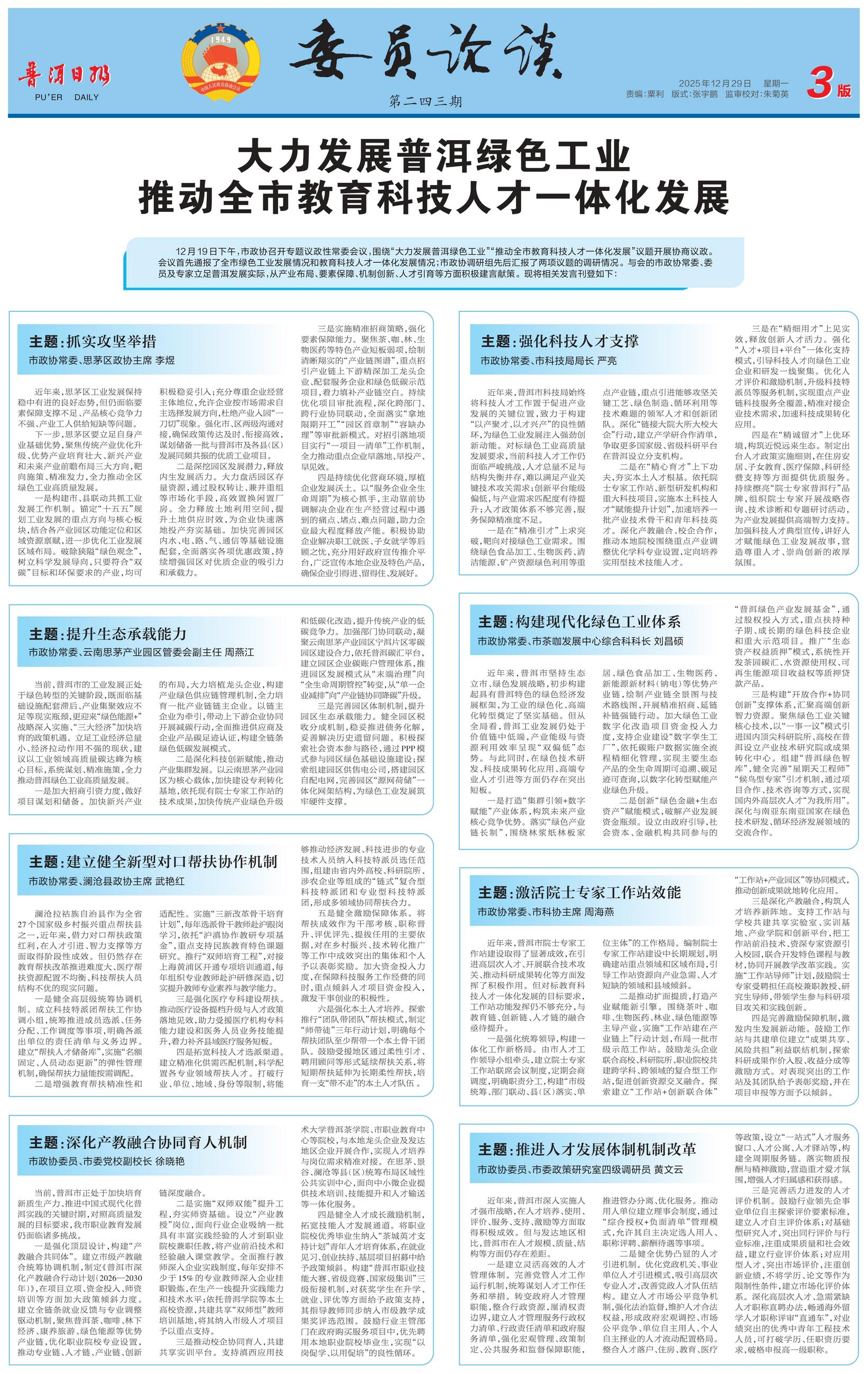 大力发展普洱绿色工业 推动全市教育科技人才一体化发展