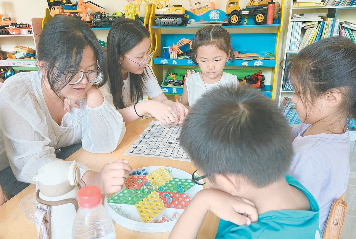 “这里有很多小朋友,大家一起学习、玩游戏,我们都很开心。”参加暑托班的学生周丽华说。