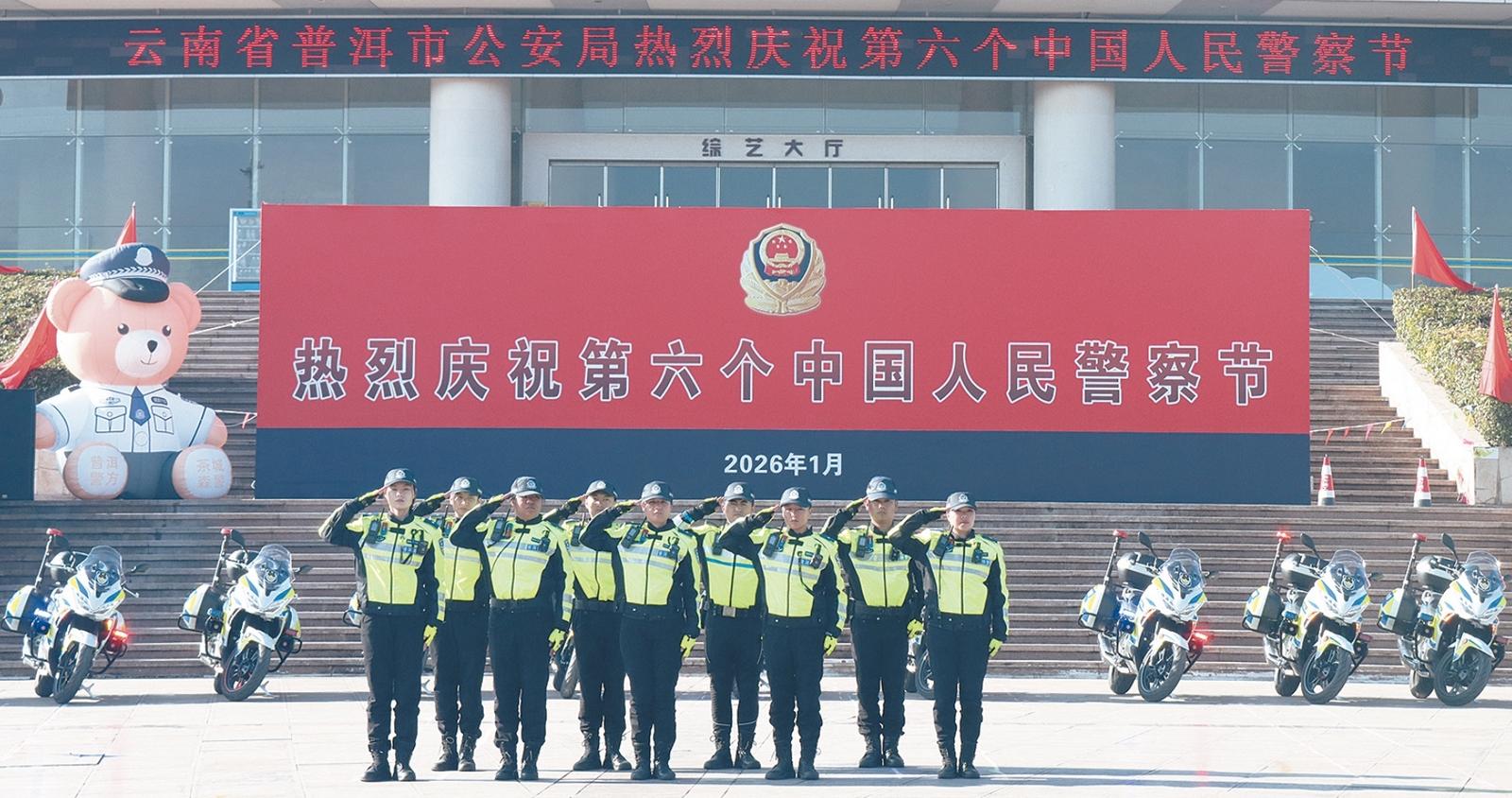 本报讯(普洱市公安局 文/图) 近日,普洱市公安局在普洱大剧院举行庆祝第六个中国人民警察节“护航新征程·警民同心行”主题活动。活动通过全景式、互动化的直播形式,集中展示了普洱公安队伍的战斗风采、年度工作成效与科技强警成果,搭建了警民沟通的桥梁,吸引超200万网友在线观看,营造出致敬人民警察、共建平安普洱的浓厚氛围。
