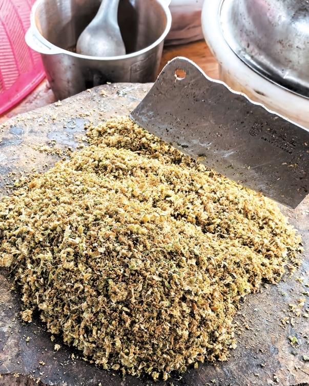 杀猪饭的香,贵在一个“鲜”字。刚宰的猪肉不用复杂调料,肥瘦相间的五花肉和冬瓜一起炖得酥烂,一口咬下满是肉香;猪血凝结成块,配上酸菜一起煮,酸辣爽口,专解油腻;最地道的要数那道“橄榄生”,取来橄榄枝,用瓷碗碎片刮下内层的皮,和煮熟切碎的五花肉拌在一起,再加点芫荽、小米辣等作料,滋味独特,让人唇齿留香。还有爆炒的猪肝、炭烤的排骨,每一道菜都带着食材本身的鲜甜。
