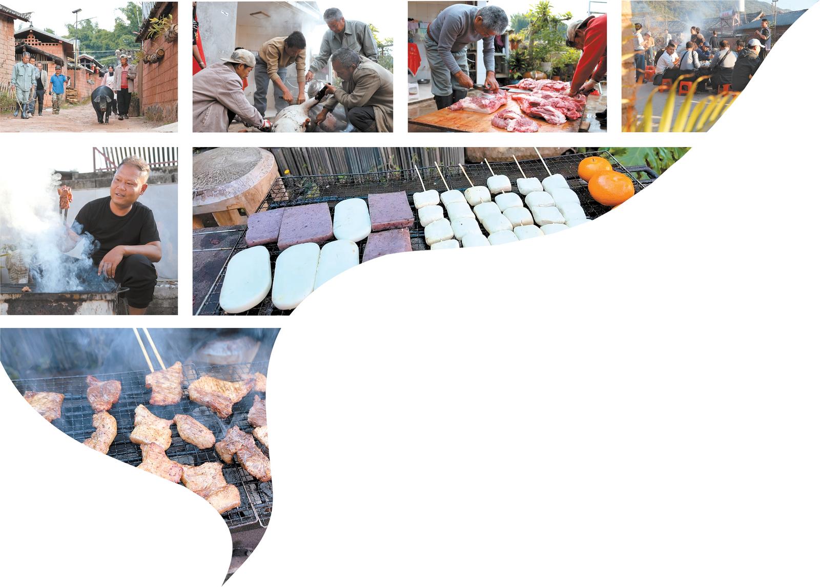 清晨的薄雾还裹着凉意,宁洱哈尼族彝族自治县磨黑镇村民家的庭院就热闹起来,邻里乡亲自发赶来搭手,添柴、按猪、洗菜……处处透着浓浓的烟火气。