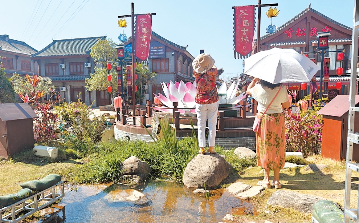 春节假期,到普洱茶马古城旅游小镇的部分游客为追求独特的拍照角度,不顾安全警示,攀爬景观石或站在水池边摆拍,甚至还有家长带着孩子在水景观旁嬉戏打闹,无视湿滑地面的潜在危险。此类行为不仅威胁自身安全,也破坏了景区和谐游览的氛围。管理部门呼吁,游客应文明游览,遵守规定,切勿因一时兴起而忽视安全风险。
